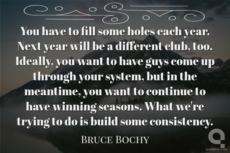 You have to fill some holes each year. Next year will be a different club, too. Ideally, you want to have guys come up through your system, but in the meantime, you want to continue to have winning seasons. What we're trying to do is build some consistency.