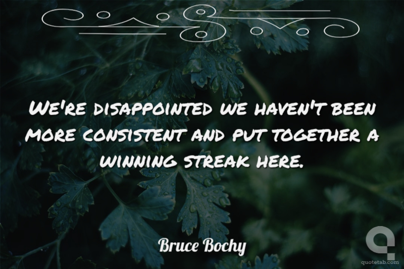 We're disappointed we haven't been more consistent and put together a winning streak here.