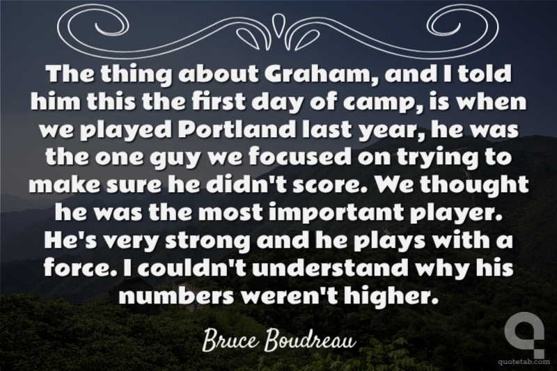The thing about Graham, and I told him this the first day of camp, is when we played Portland last year, he was the one guy we focused on trying to make sure he didn't score. We thought he was the most important player. He's very strong and he plays with a force. I couldn't understand why his numbers weren't higher.