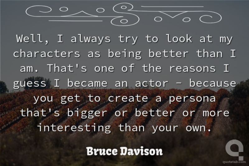 Well, I always try to look at my characters as being better than I am. That's one of the reasons I guess I became an actor - because you get to create a persona that's bigger or better or more interesting than your own.