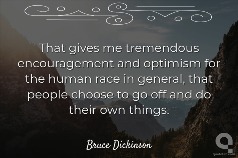 That gives me tremendous encouragement and optimism for the human race in general, that people choose to go off and do their own things.