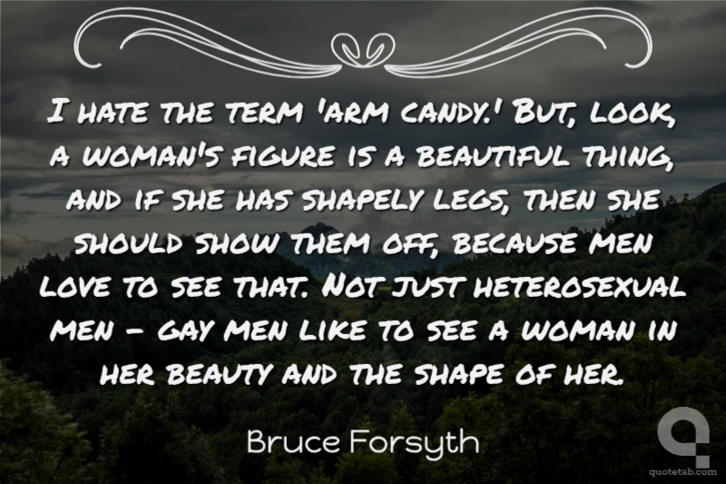 I hate the term 'arm candy.' But, look, a woman's figure is a beautiful thing, and if she has shapely legs, then she should show them off, because men love to see that. Not just heterosexual men - gay men like to see a woman in her beauty and the shape of her.