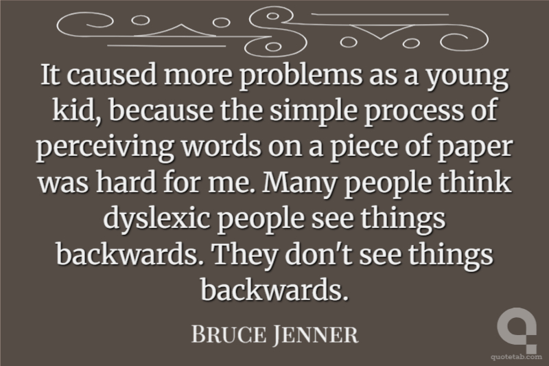 It caused more problems as a young kid, because the simple process of perceiving words on a piece of paper was hard for me. Many people think dyslexic people see things backwards. They don't see things backwards.