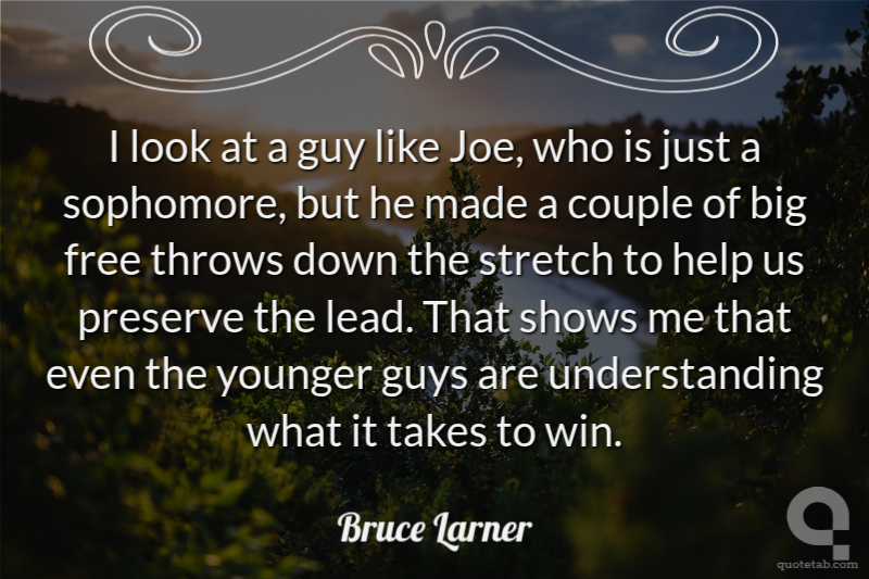 I look at a guy like Joe, who is just a sophomore, but he made a couple of big free throws down the stretch to help us preserve the lead. That shows me that even the younger guys are understanding what it takes to win.