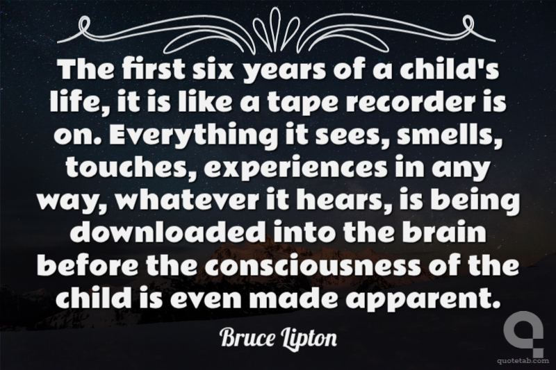 The first six years of a child's life, it is like a tape recorder is on. Everything it sees, smells, touches, experiences in any way, whatever it hears, is being downloaded into the brain before the consciousness of the child is even made apparent.