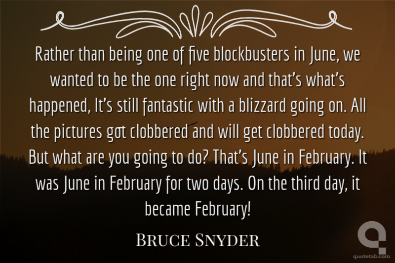 Rather than being one of five blockbusters in June, we wanted to be the one right now and that's what's happened, It's still fantastic with a blizzard going on. All the pictures got clobbered and will get clobbered today. But what are you going to do? That's June in February. It was June in February for two days. On the third day, it became February!