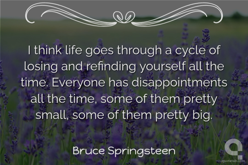 I think life goes through a cycle of losing and refinding yourself all the time. Everyone has disappointments all the time, some of them pretty small, some of them pretty big.