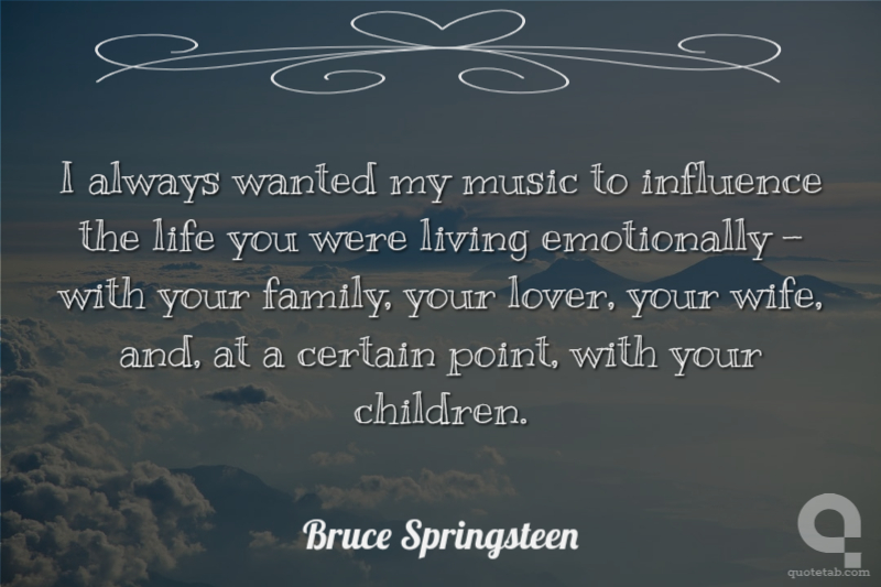 I always wanted my music to influence the life you were living emotionally - with your family, your lover, your wife, and, at a certain point, with your children.
