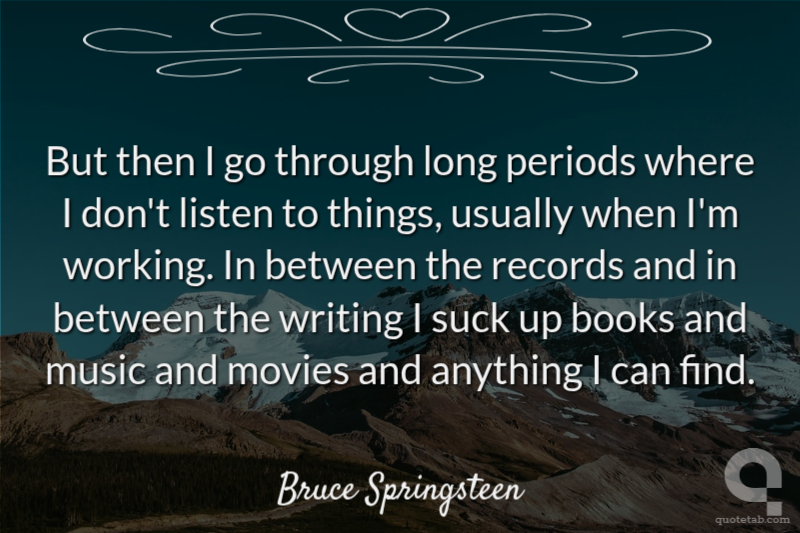 But then I go through long periods where I don't listen to things, usually when I'm working. In between the records and in between the writing I suck up books and music and movies and anything I can find.