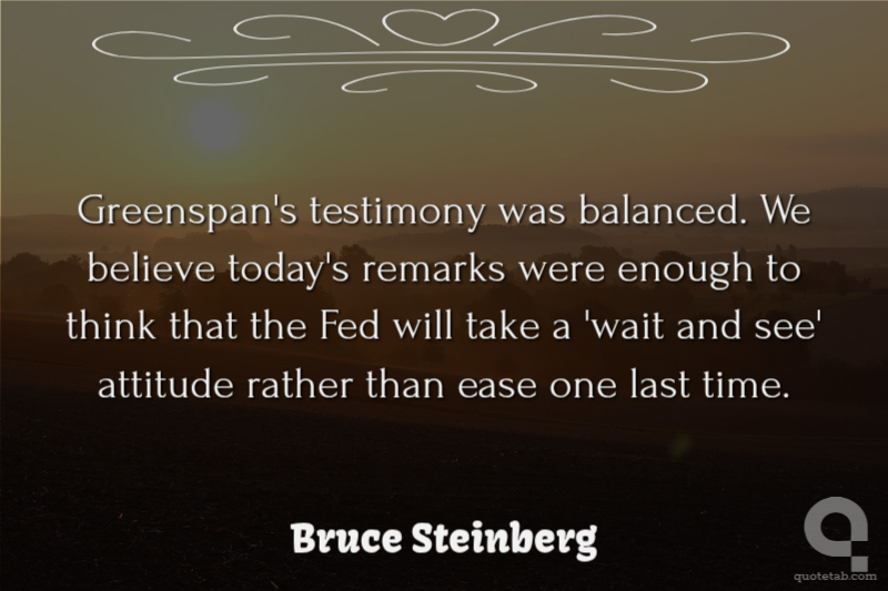 Greenspan's testimony was balanced. We believe today's remarks were enough to think that the Fed will take a 'wait and see' attitude rather than ease one last time.