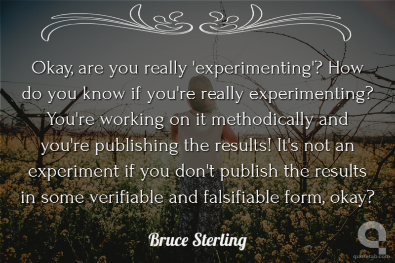 Okay, are you really 'experimenting'? How do you know if you're really experimenting? You're working on it methodically and you're publishing the results! It's not an experiment if you don't publish the results in some verifiable and falsifiable form, okay?