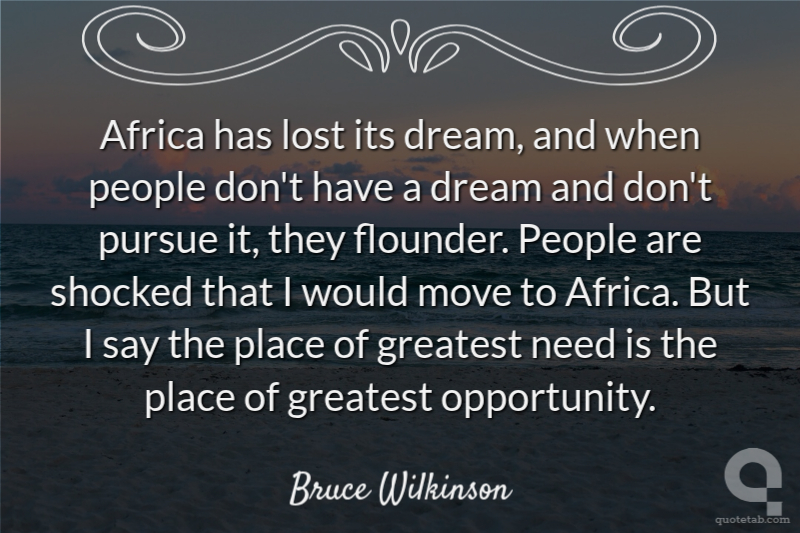 Africa has lost its dream, and when people don't have a dream and don't pursue it, they flounder. People are shocked that I would move to Africa. But I say the place of greatest need is the place of greatest opportunity.