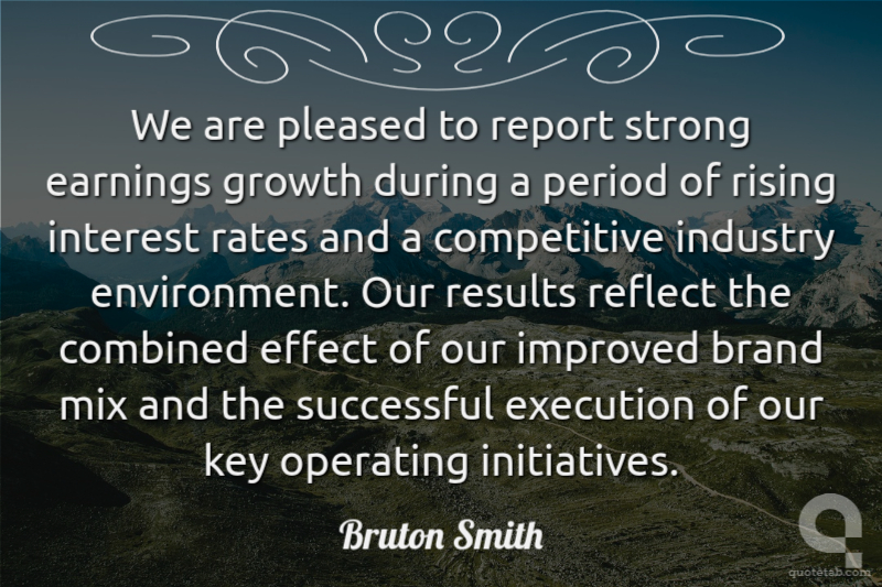We are pleased to report strong earnings growth during a period of rising interest rates and a competitive industry environment. Our results reflect the combined effect of our improved brand mix and the successful execution of our key operating initiatives.
