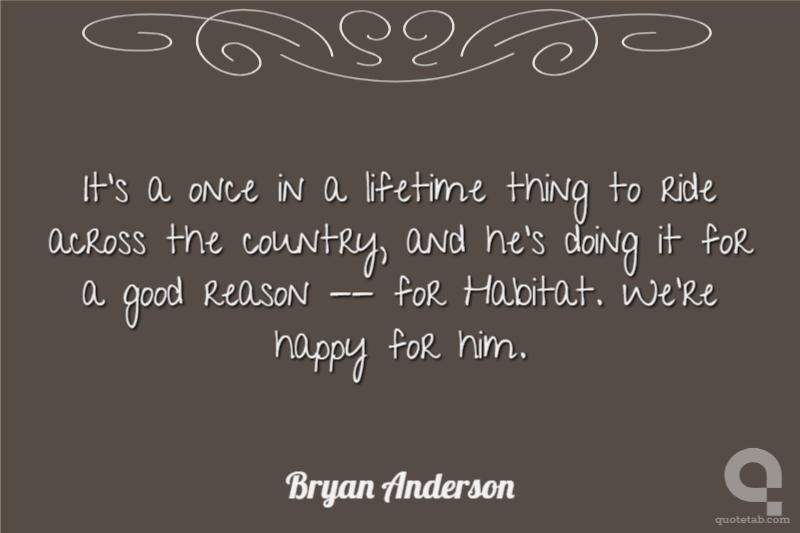 It's a once in a lifetime thing to ride across the country, and he's doing it for a good reason -- for Habitat. We're happy for him.