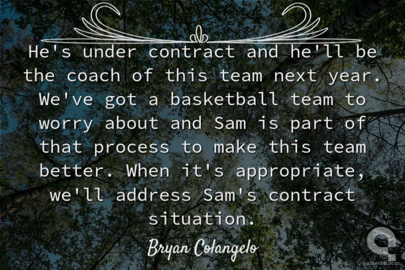 He's under contract and he'll be the coach of this team next year. We've got a basketball team to worry about and Sam is part of that process to make this team better. When it's appropriate, we'll address Sam's contract situation.