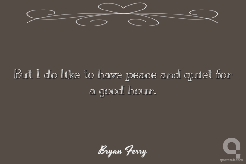 But I do like to have peace and quiet for a good hour.