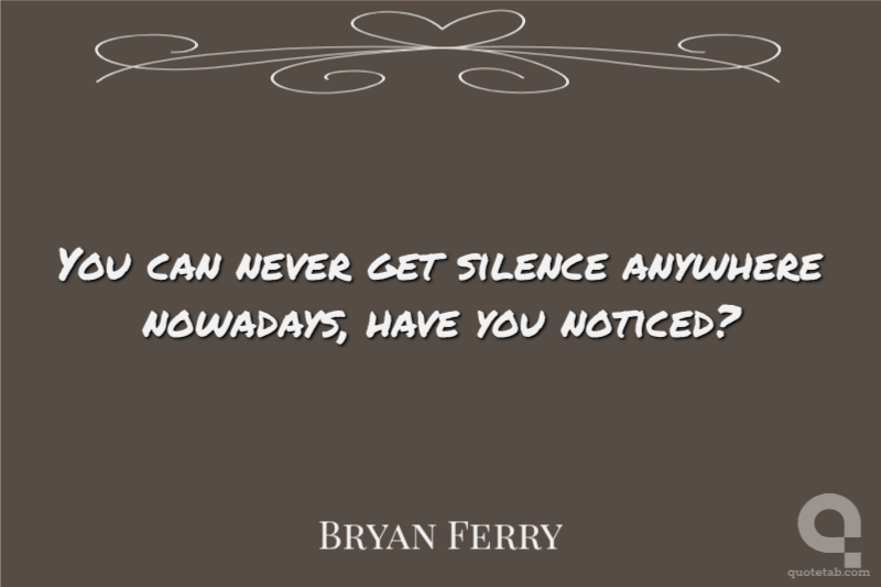 You can never get silence anywhere nowadays, have you noticed?