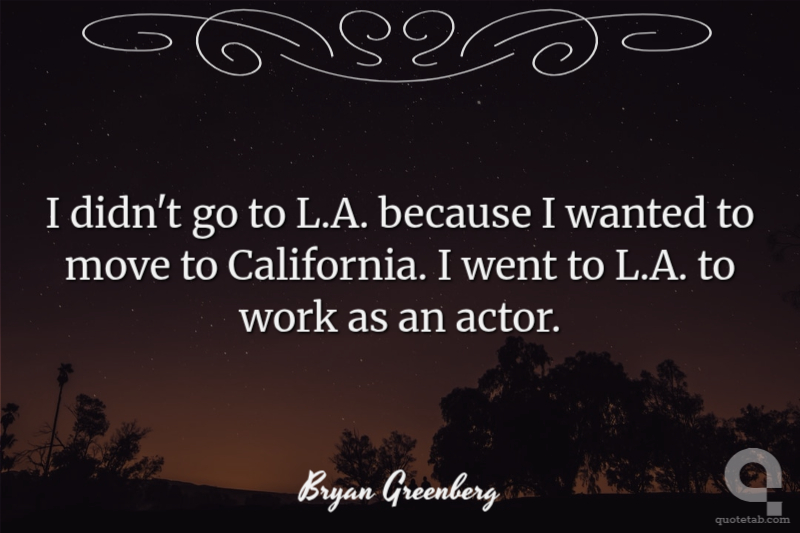 I didn't go to L.A. because I wanted to move to California. I went to L.A. to work as an actor.
