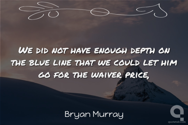 We did not have enough depth on the blue line that we could let him go for the waiver price,