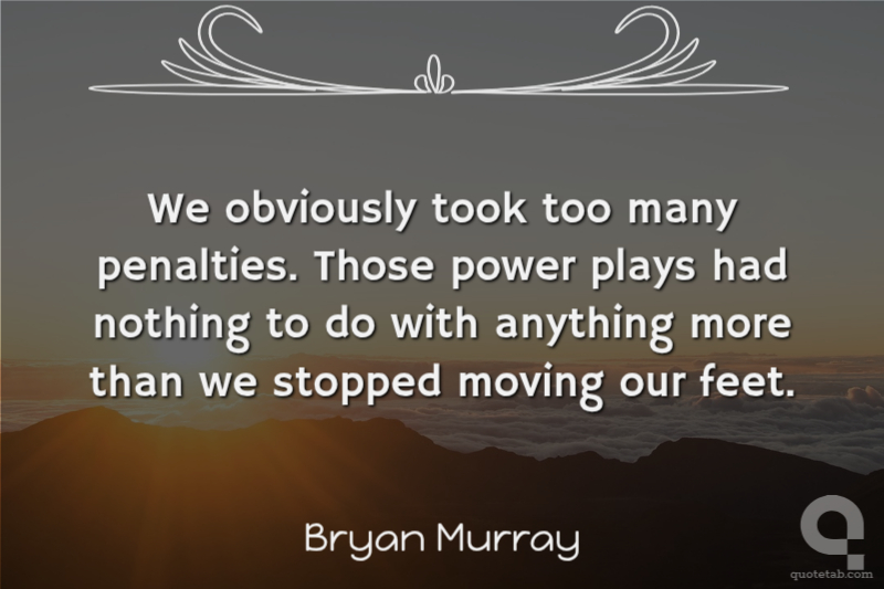 We obviously took too many penalties. Those power plays had nothing to do with anything more than we stopped moving our feet.