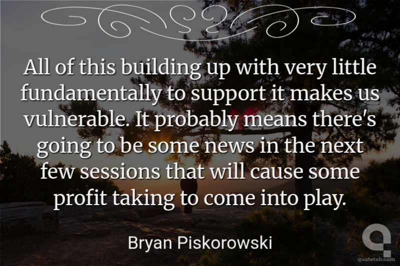 All of this building up with very little fundamentally to support it makes us vulnerable. It probably means there's going to be some news in the next few sessions that will cause some profit taking to come into play.