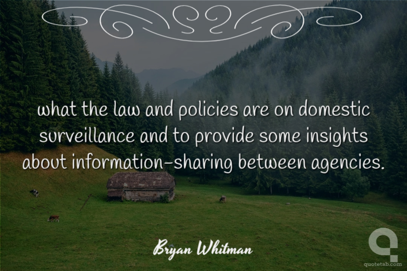 what the law and policies are on domestic surveillance and to provide some insights about information-sharing between agencies.
