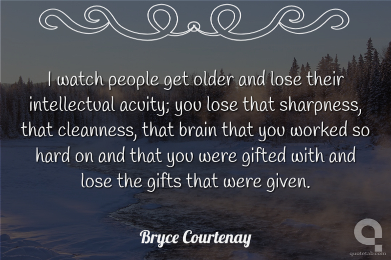 I watch people get older and lose their intellectual acuity; you lose that sharpness, that cleanness, that brain that you worked so hard on and that you were gifted with and lose the gifts that were given.