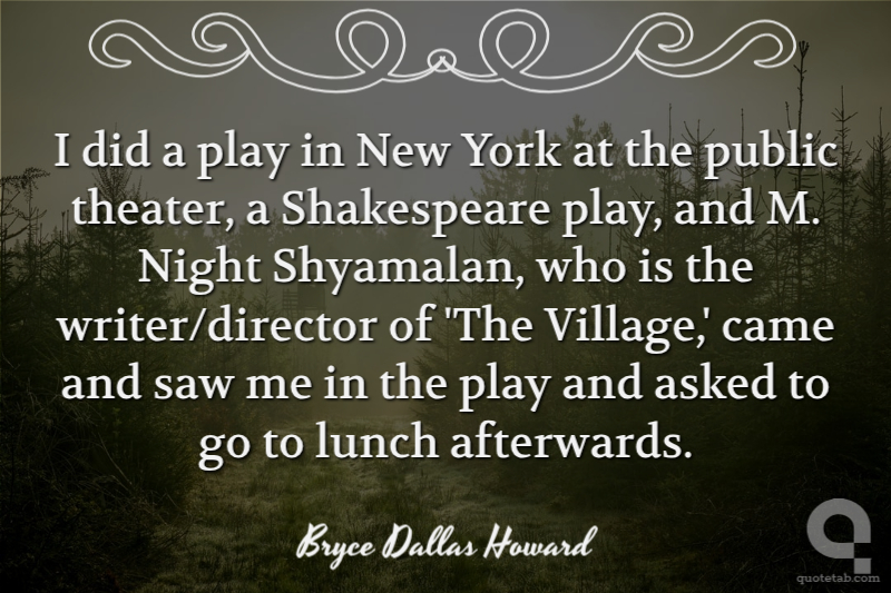 I did a play in New York at the public theater, a Shakespeare play, and M. Night Shyamalan, who is the writer/director of 'The Village,' came and saw me in the play and asked to go to lunch afterwards.