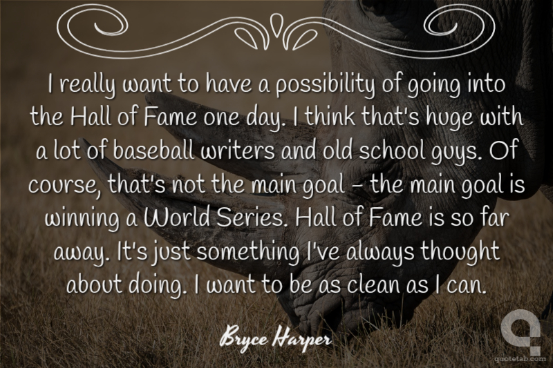 I really want to have a possibility of going into the Hall of Fame one day. I think that's huge with a lot of baseball writers and old school guys. Of course, that's not the main goal - the main goal is winning a World Series. Hall of Fame is so far away. It's just something I've always thought about doing. I want to be as clean as I can.