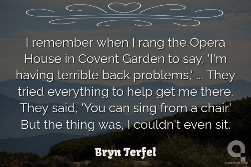 I remember when I rang the Opera House in Covent Garden to say, 'I'm having terrible back problems,' ... They tried everything to help get me there. They said, 'You can sing from a chair.' But the thing was, I couldn't even sit.
