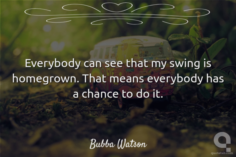 Everybody can see that my swing is homegrown. That means everybody has a chance to do it.