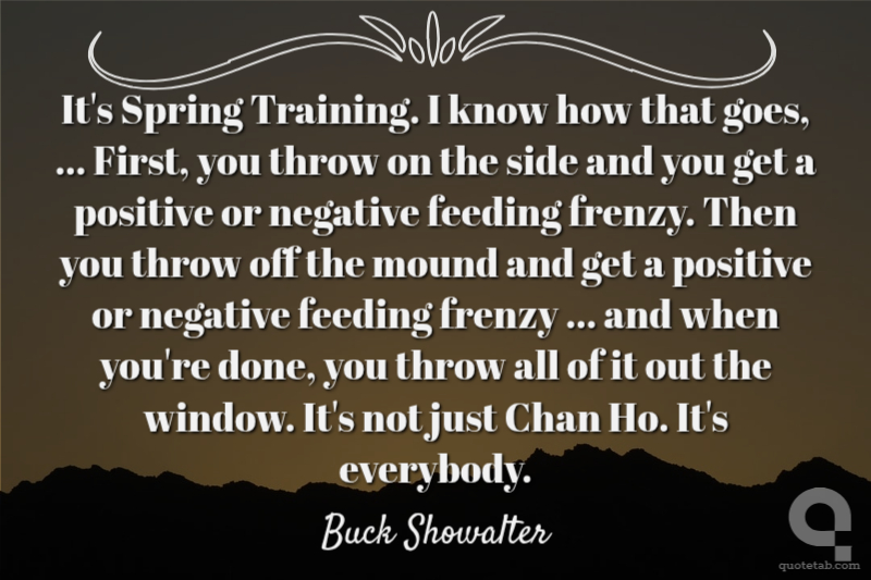 It's Spring Training. I know how that goes, ... First, you throw on the side and you get a positive or negative feeding frenzy. Then you throw off the mound and get a positive or negative feeding frenzy ... and when you're done, you throw all of it out the window. It's not just Chan Ho. It's everybody.