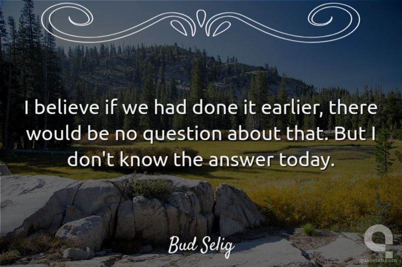 I believe if we had done it earlier, there would be no question about that. But I don't know the answer today.
