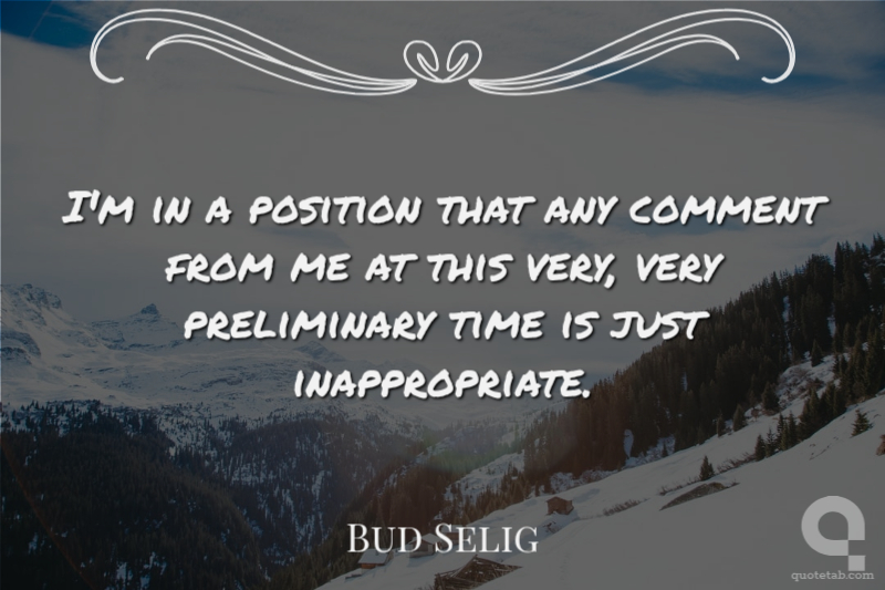 I'm in a position that any comment from me at this very, very preliminary time is just inappropriate.