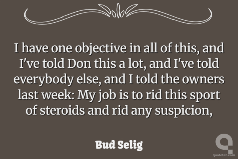 I have one objective in all of this, and I've told Don this a lot, and I've told everybody else, and I told the owners last week: My job is to rid this sport of steroids and rid any suspicion,