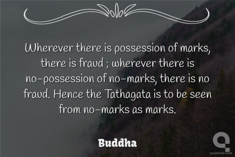 Wherever there is possession of marks, there is fraud ; wherever there is no-possession of no-marks, there is no fraud. Hence the Tathagata is to be seen from no-marks as marks.