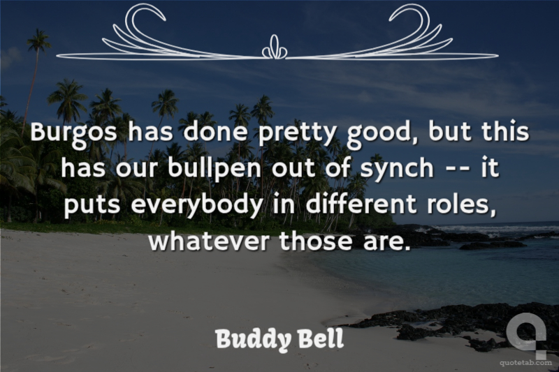Burgos has done pretty good, but this has our bullpen out of synch -- it puts everybody in different roles, whatever those are.