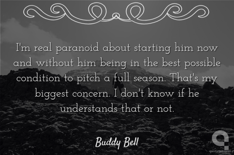 I'm real paranoid about starting him now and without him being in the best possible condition to pitch a full season. That's my biggest concern. I don't know if he understands that or not.