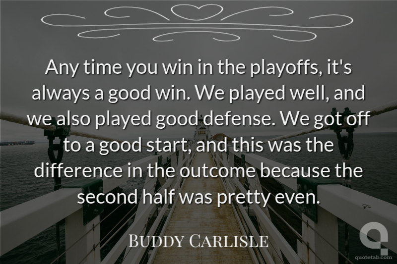 Any time you win in the playoffs, it's always a good win. We played well, and we also played good defense. We got off to a good start, and this was the difference in the outcome because the second half was pretty even.