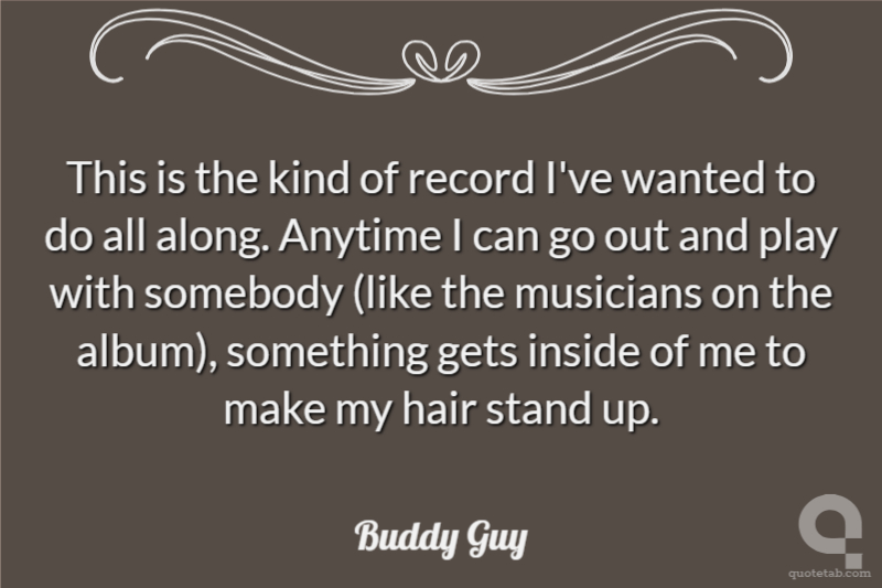 This is the kind of record I've wanted to do all along. Anytime I can go out and play with somebody (like the musicians on the album), something gets inside of me to make my hair stand up.
