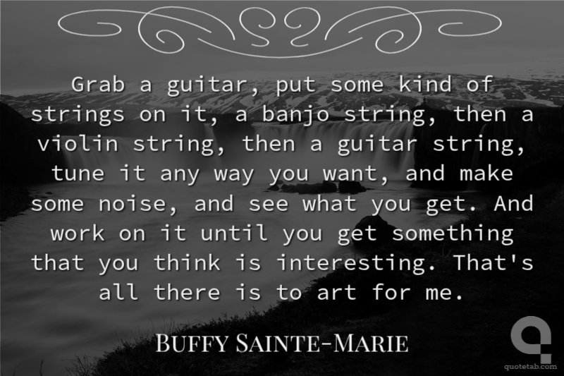 Grab a guitar, put some kind of strings on it, a banjo string, then a violin string, then a guitar string, tune it any way you want, and make some noise, and see what you get. And work on it until you get something that you think is interesting. That's all there is to art for me.