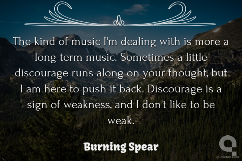 The kind of music I'm dealing with is more a long-term music. Sometimes a little discourage runs along on your thought, but I am here to push it back. Discourage is a sign of weakness, and I don't like to be weak.