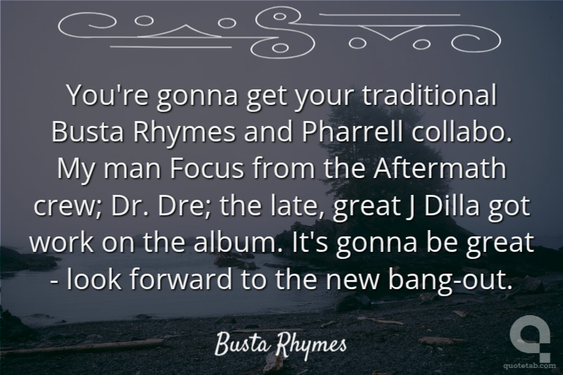 You're gonna get your traditional Busta Rhymes and Pharrell collabo. My man Focus from the Aftermath crew; Dr. Dre; the late, great J Dilla got work on the album. It's gonna be great - look forward to the new bang-out.
