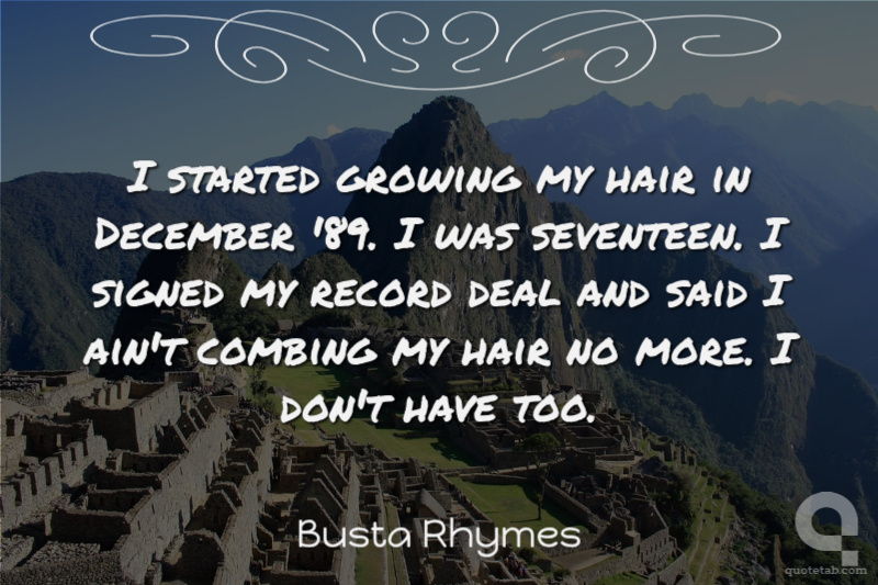 I started growing my hair in December '89. I was seventeen. I signed my record deal and said I ain't combing my hair no more. I don't have too.