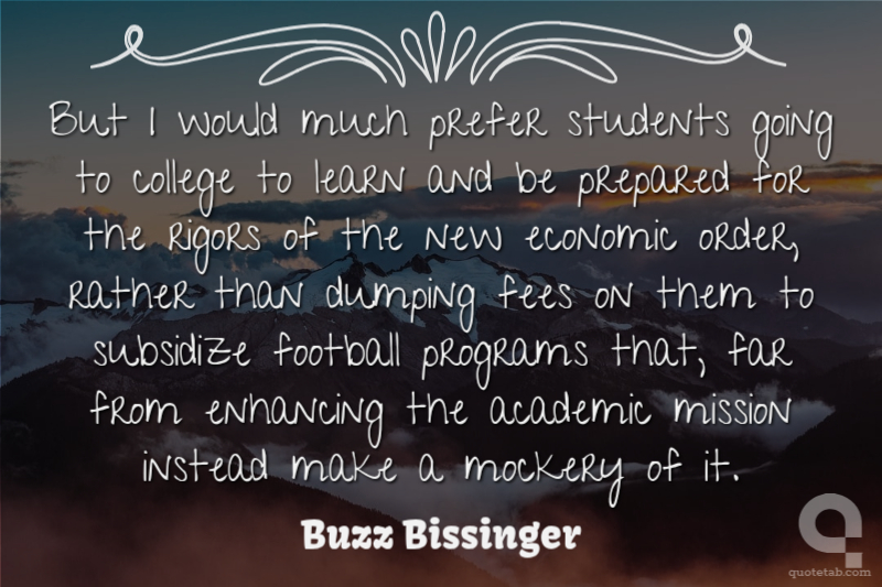 But I would much prefer students going to college to learn and be prepared for the rigors of the new economic order, rather than dumping fees on them to subsidize football programs that, far from enhancing the academic mission instead make a mockery of it.