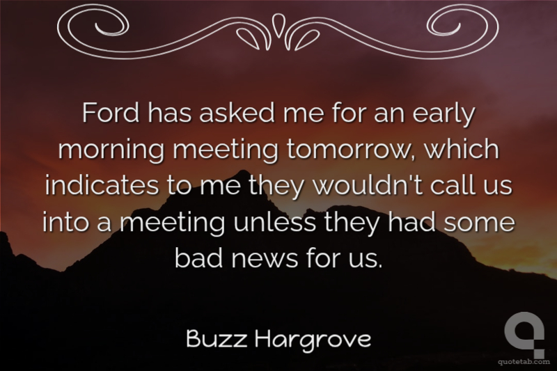Ford has asked me for an early morning meeting tomorrow, which indicates to me they wouldn't call us into a meeting unless they had some bad news for us.