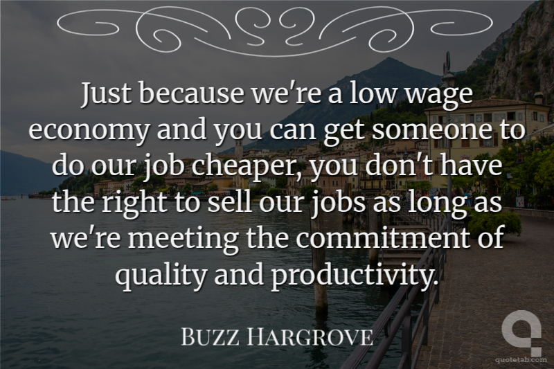 Just because we're a low wage economy and you can get someone to do our job cheaper, you don't have the right to sell our jobs as long as we're meeting the commitment of quality and productivity.