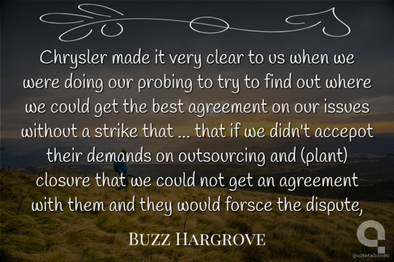 Chrysler made it very clear to us when we were doing our probing to try to find out where we could get the best agreement on our issues without a strike that ... that if we didn't accepot their demands on outsourcing and (plant) closure that we could not get an agreement with them and they would forsce the dispute,