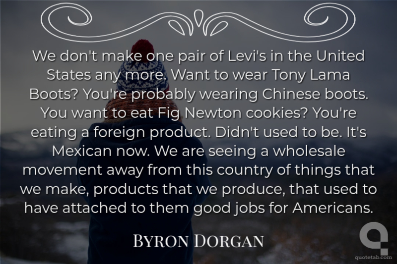 We don't make one pair of Levi's in the United States any more. Want to wear Tony Lama Boots? You're probably wearing Chinese boots. You want to eat Fig Newton cookies? You're eating a foreign product. Didn't used to be. It's Mexican now. We are seeing a wholesale movement away from this country of things that we make, products that we produce, that used to have attached to them good jobs for Americans.