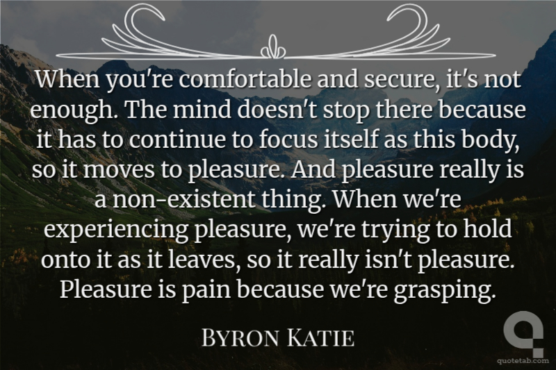 When you're comfortable and secure, it's not enough. The mind doesn't stop there because it has to continue to focus itself as this body, so it moves to pleasure. And pleasure really is a non-existent thing. When we're experiencing pleasure, we're trying to hold onto it as it leaves, so it really isn't pleasure. Pleasure is pain because we're grasping.